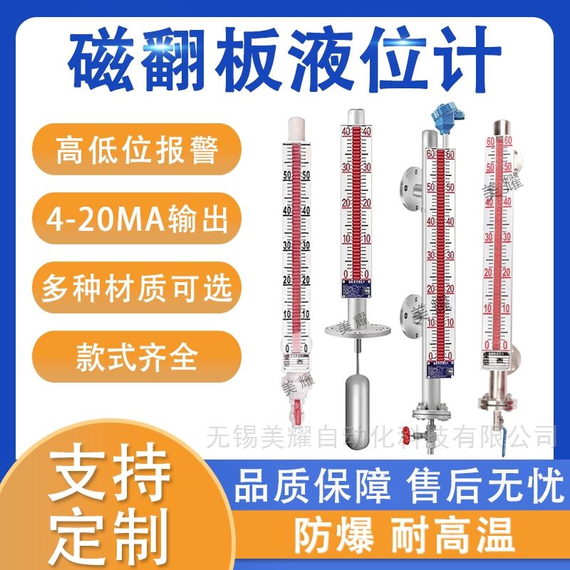 該液位計適用于化工、石油等工業(yè)設(shè)備容器上做液位顯示。磁翻板液位計可用來直接指示密封容器中的液位高度,具有結(jié)構(gòu)簡單,直觀可靠,經(jīng)久耐用等優(yōu)點,但容器中的介質(zhì)必須是與鋼、鋼紙及石墨壓環(huán)不起腐蝕作用的。高溫防腐防爆型磁性浮子液位計 磁翻板液位